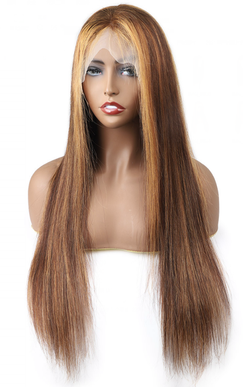 4*4 Closure Human Hair Lace Wig Raw Brazilian Human Hair P4/27 Straight for Black Women