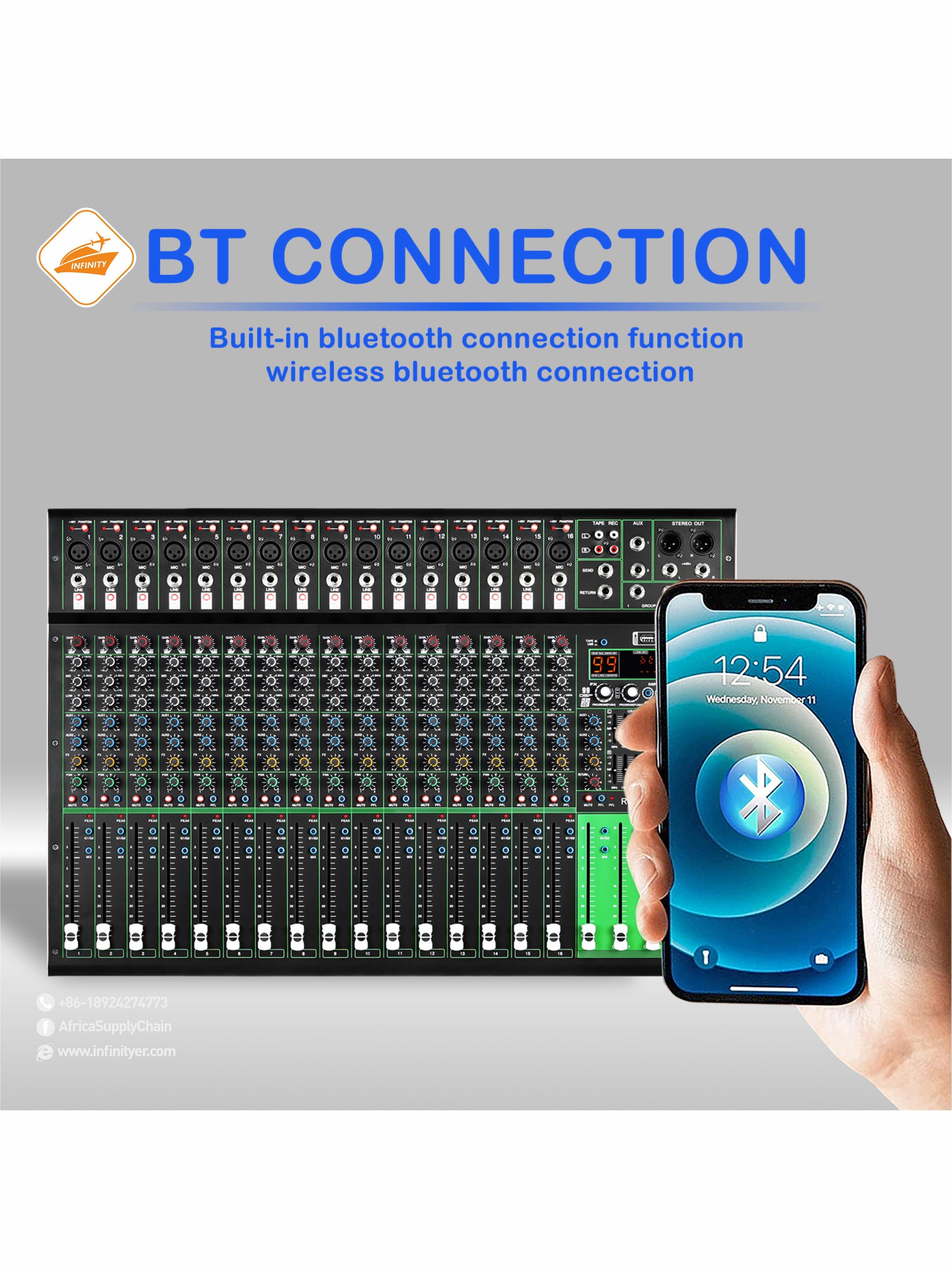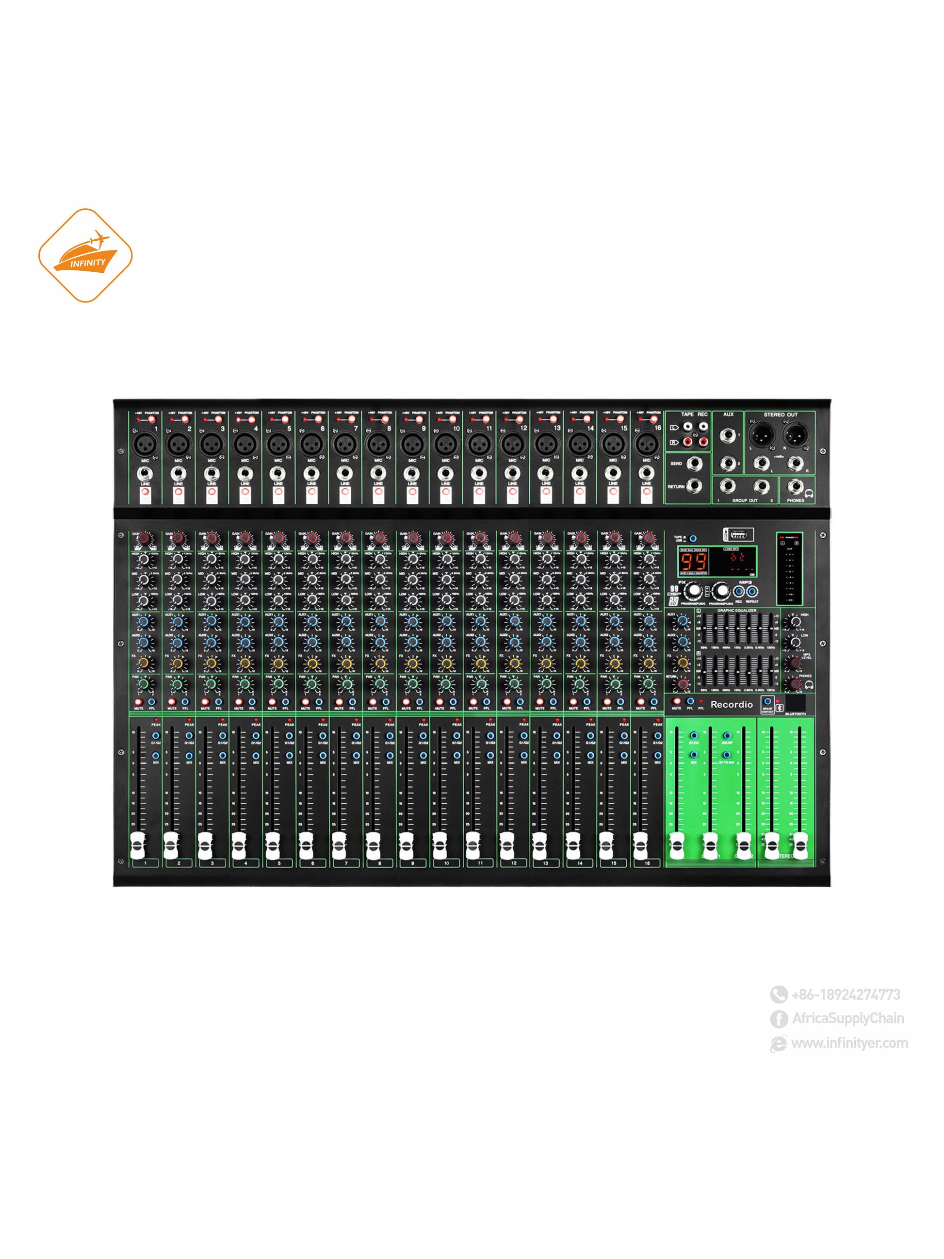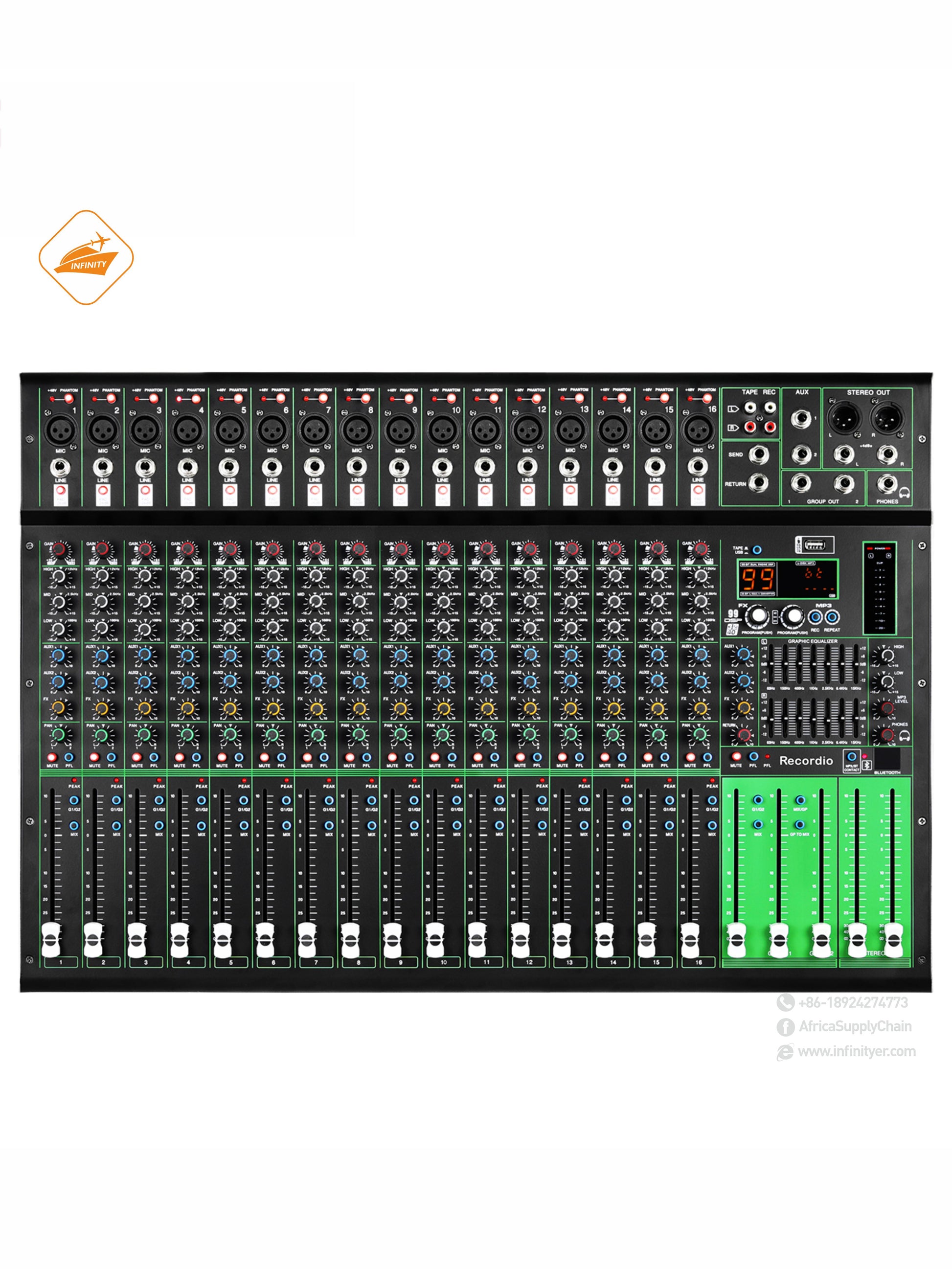 GAX-PK16 New PK series mixer with 99DSP dual 7-segment equalizer USB BT 16 channel stage KTV professional audio mixer