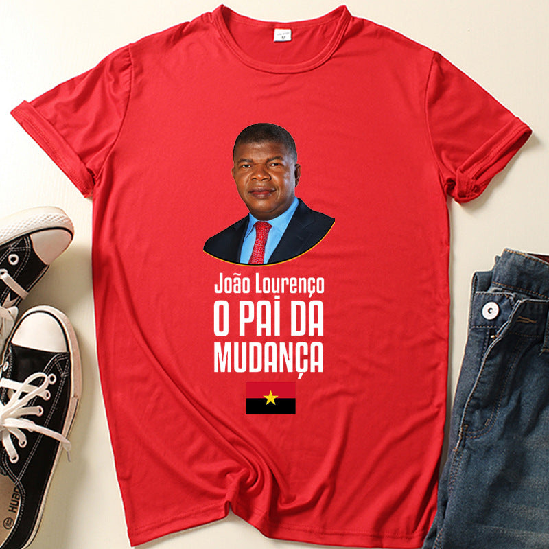 Letter Print Polyester Short Sleeve Custom Logo Crew Neck T-Shirt for African Elections, Reunion Events Etc