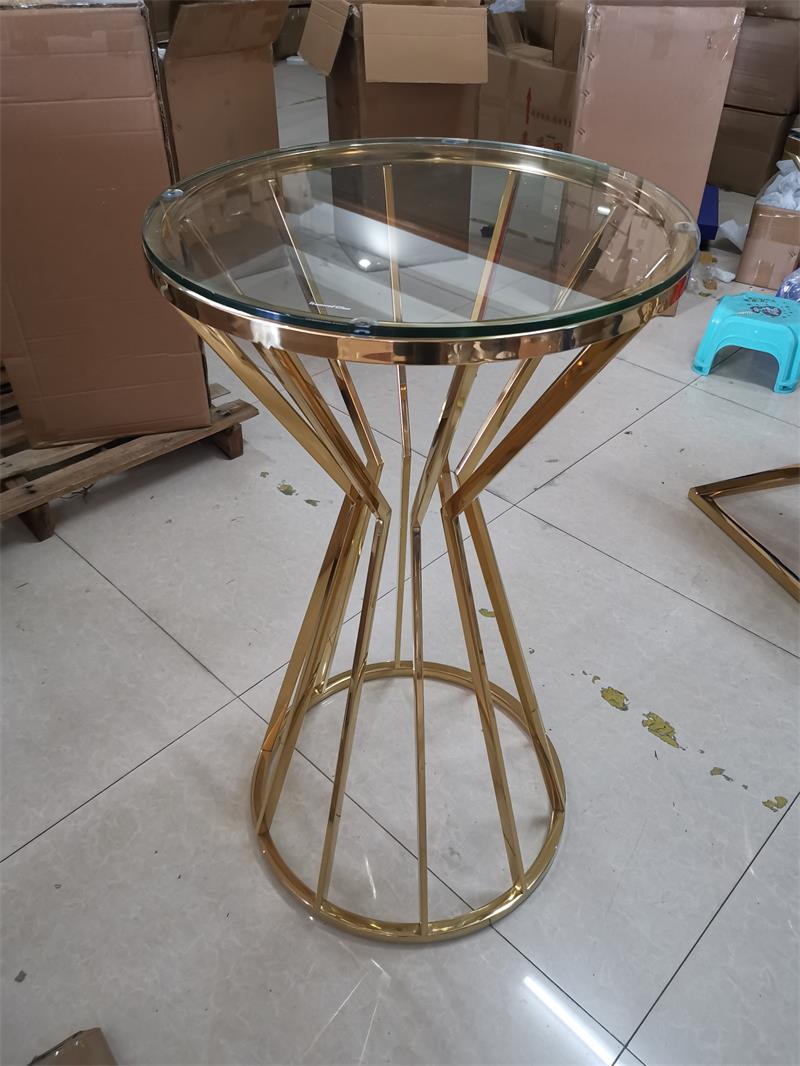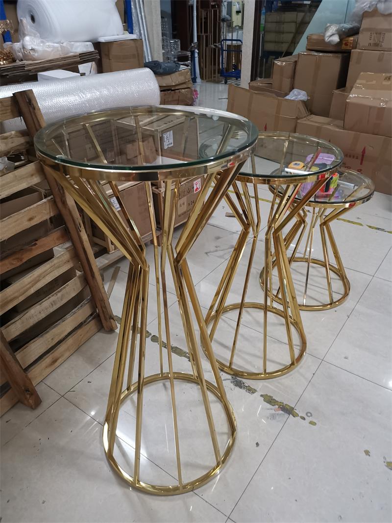 party rental gold stainless steel base glass top