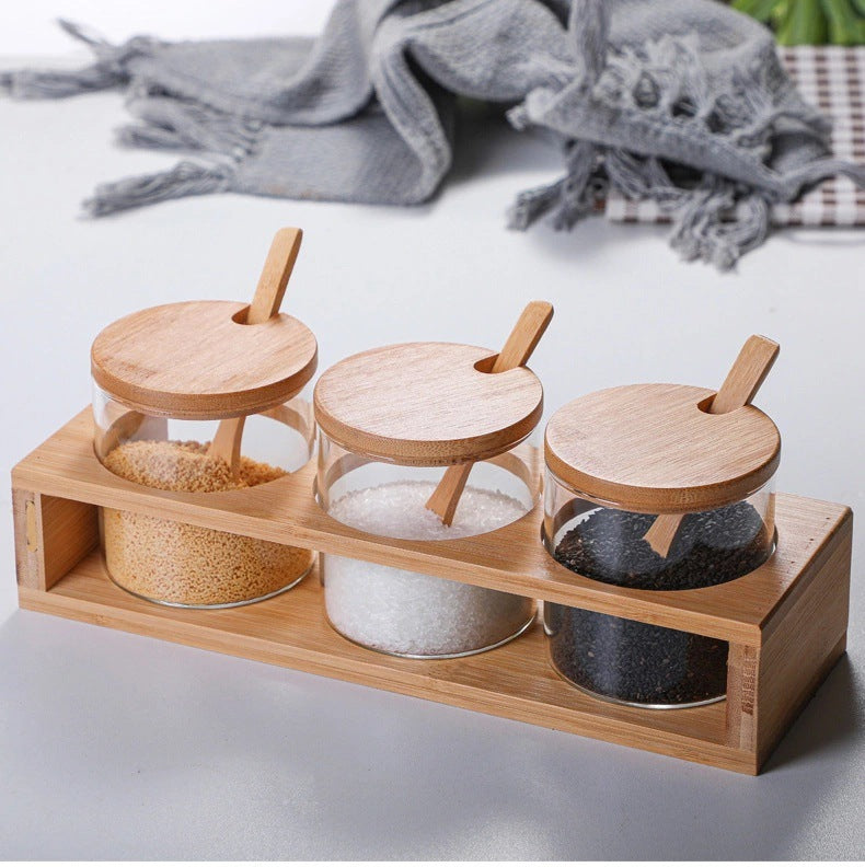 Spice Jar Household Seasoning Jar Set Glass Bamboo Wood Lid