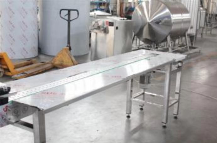 Equipped with a 5-meter-long stainless steel packing platform, with a power transmission line in the middle, and people standing on both sides for manual packing.