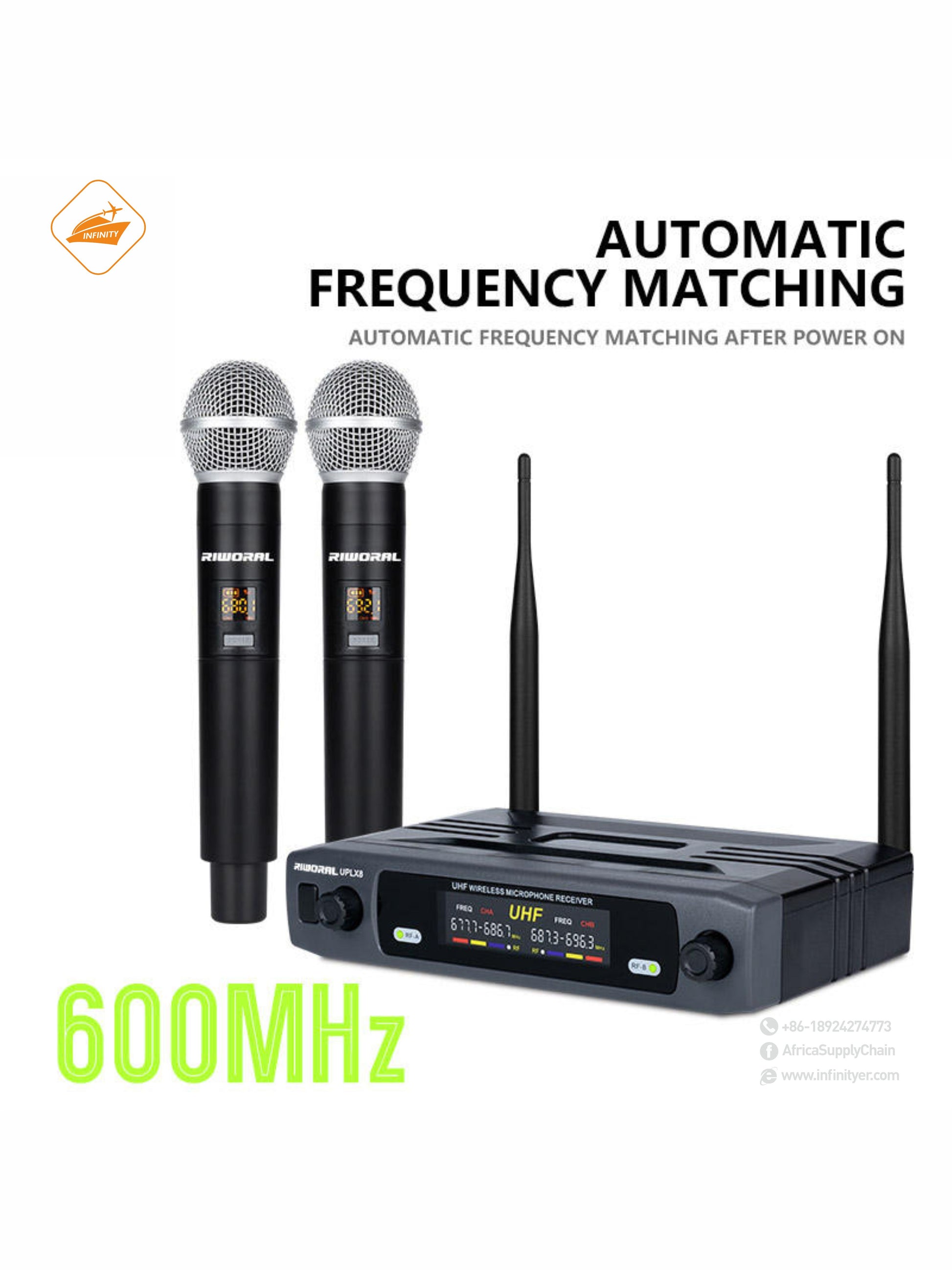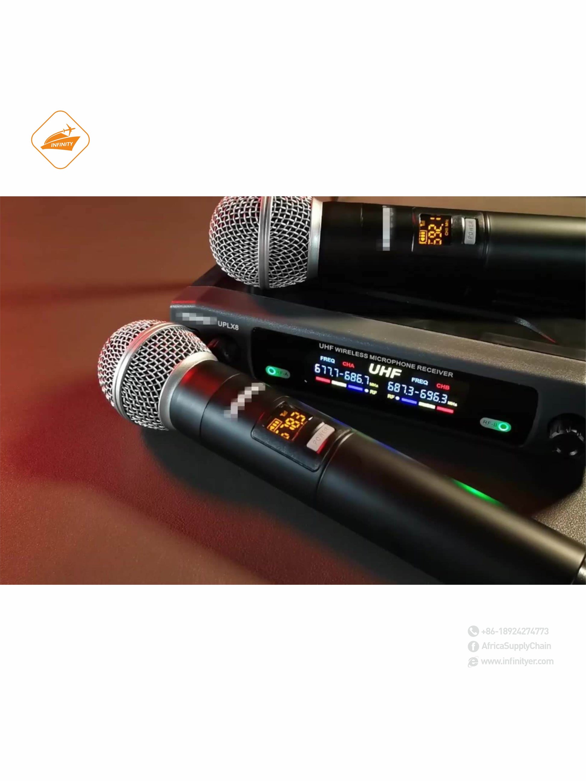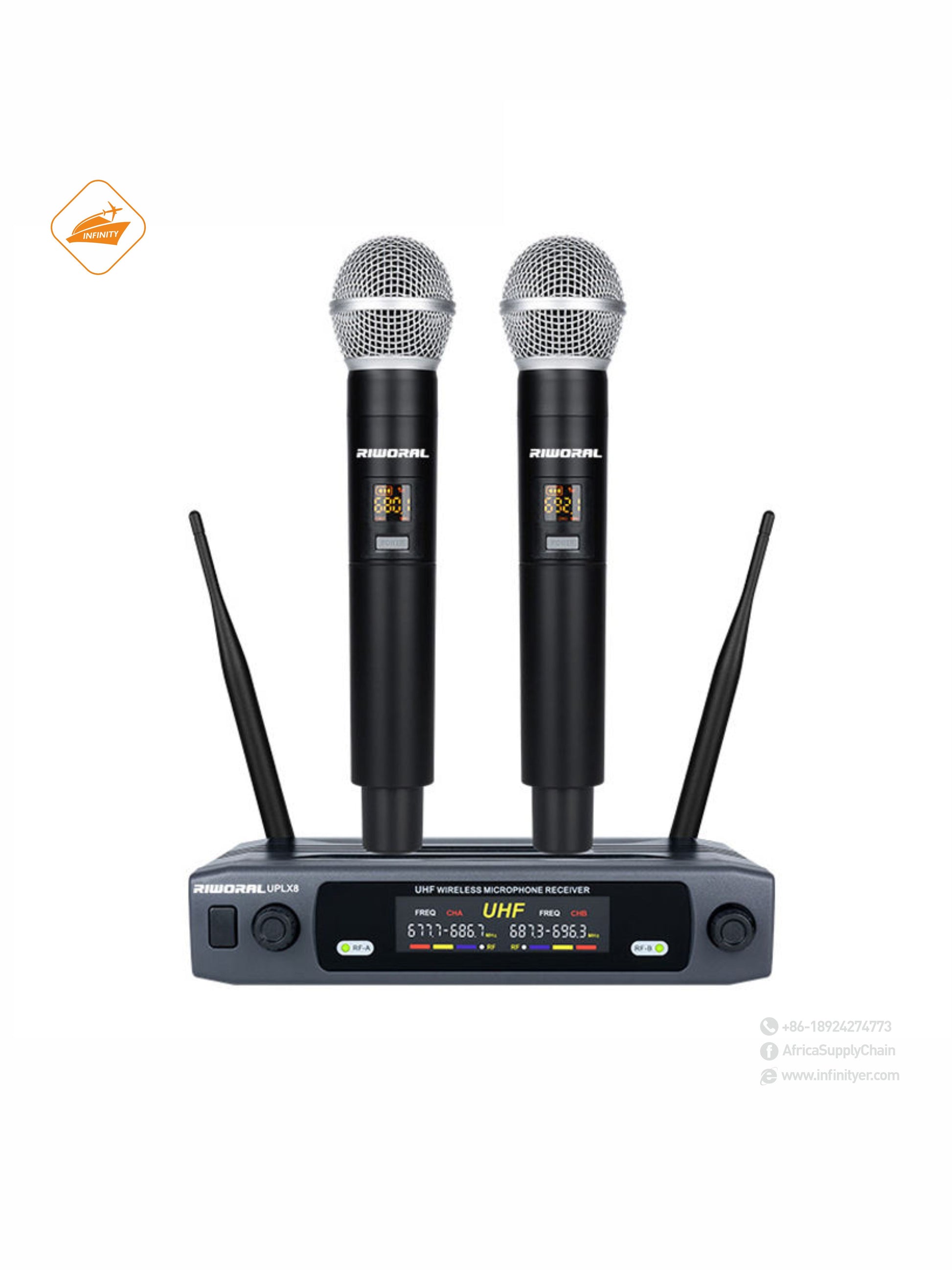 Dynamic Microphone, 2 Channels UHF Wireless Microphone