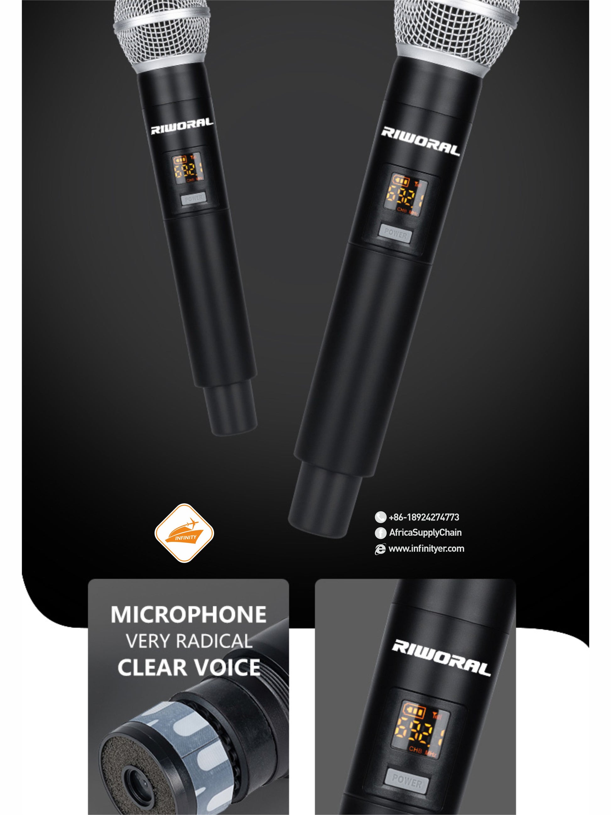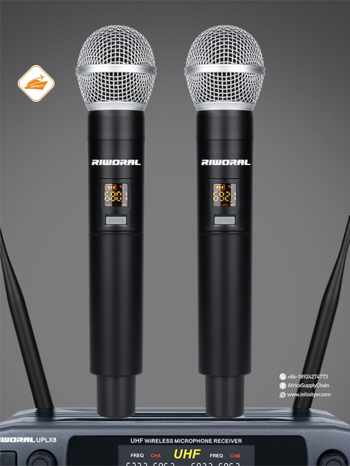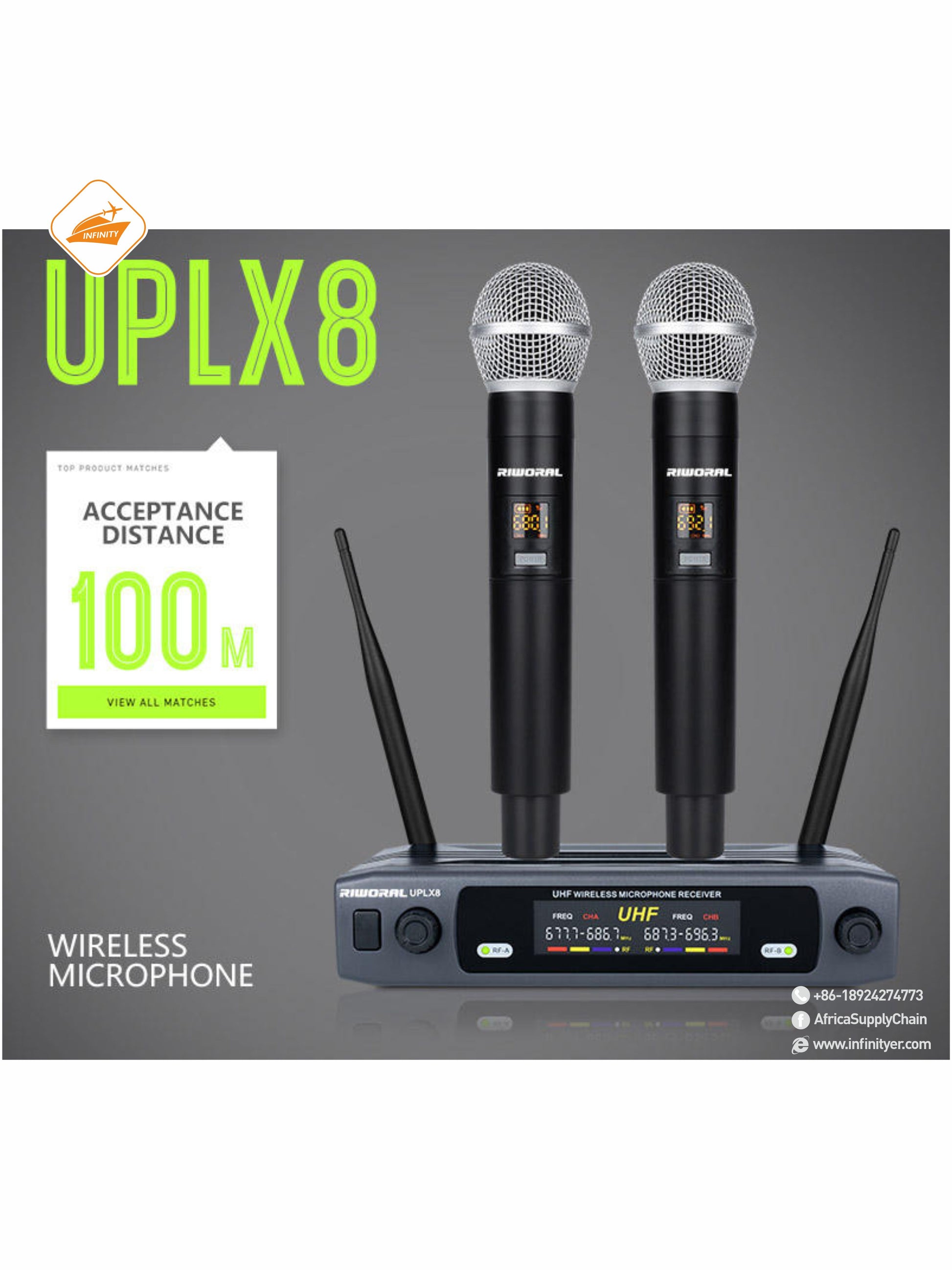 Dynamic Microphone, 2 Channels UHF Wireless Microphone